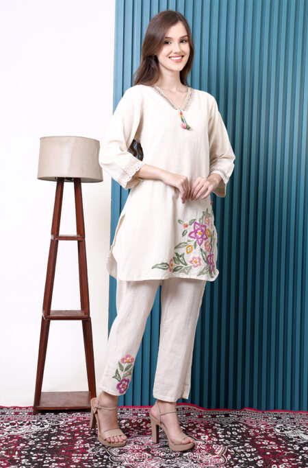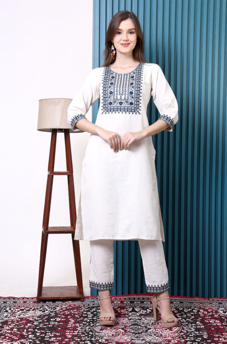 The Chanderi pant suit is stunning. The fabric feels so light and breathable, perfect for summer events. I love how elegant yet comfortable it is.