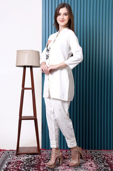 ₹2,450.00Original price was: ₹2,450.00.₹1,749.00Current price is: ₹1,749.00.Keep it cool and contemporary with this white Lenin cotton cord set. Featuring a unique chess-inspired graphic print on the front, this set blends casual chic with artistic flair. The lightweight Lenin fabric ensures breathability and comfort, making it ideal for all-day wear. The slim-fit pants and button-down shirt design create a sleek, modern look. Whether you’re heading to a casual hangout or a weekend outing, this cord set gives you the perfect balance of comfort and creativity.